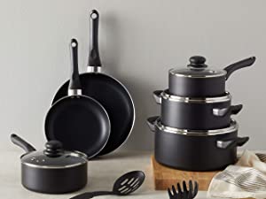 Jumpstart healthy cook-at-home habits with this non-stick cookware set which includes frying pans, sauce pans and casserole pans.