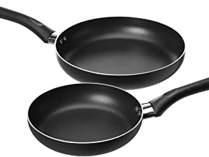The set features a non-stick coating, which allows for lower-fat cooking options, keeps food from sticking to the pan and allows for gracious serving.