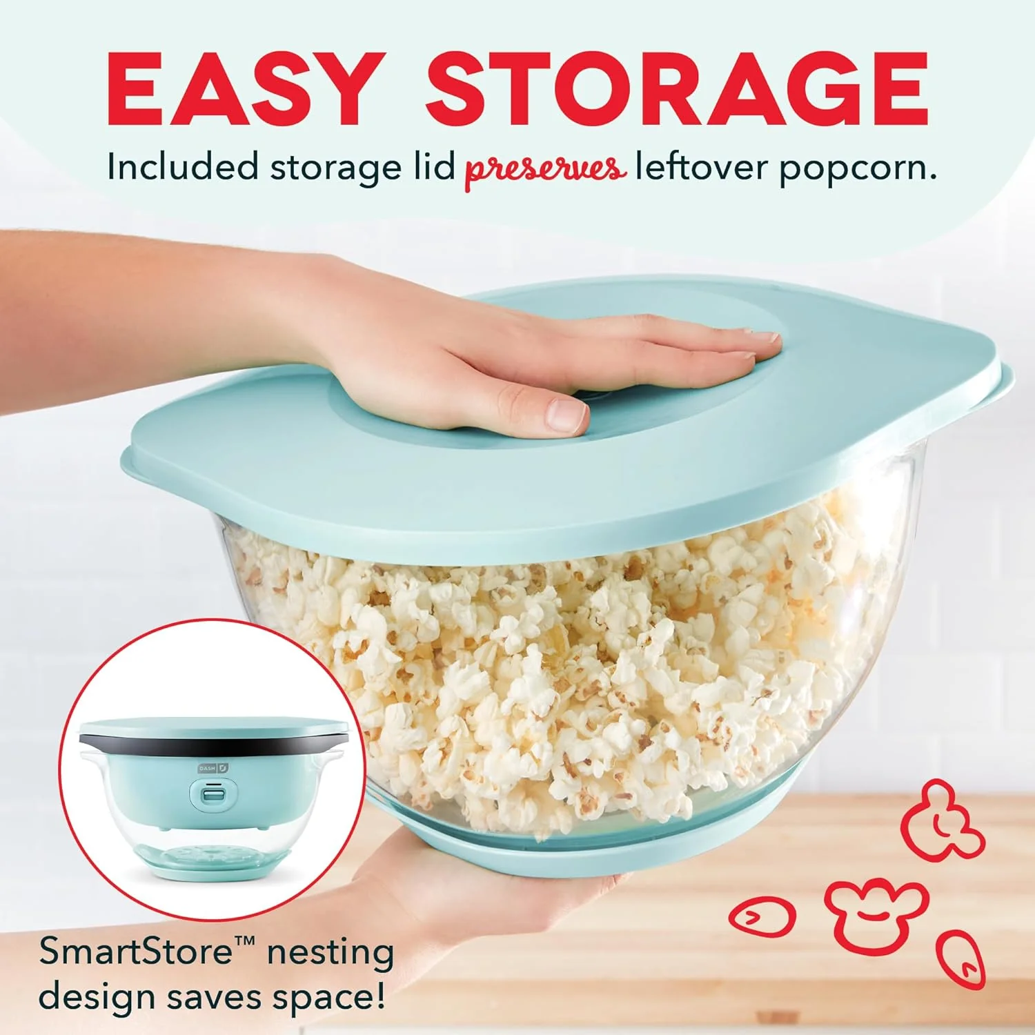 MULTIFUNCTIONAL: The Lid is equipped with built-in measuring cups to easily add the desired amount of kernels, whether it’s 8, 16, or 24 cups, while the Bowl allows for easy transportation from kitchen to couch.
